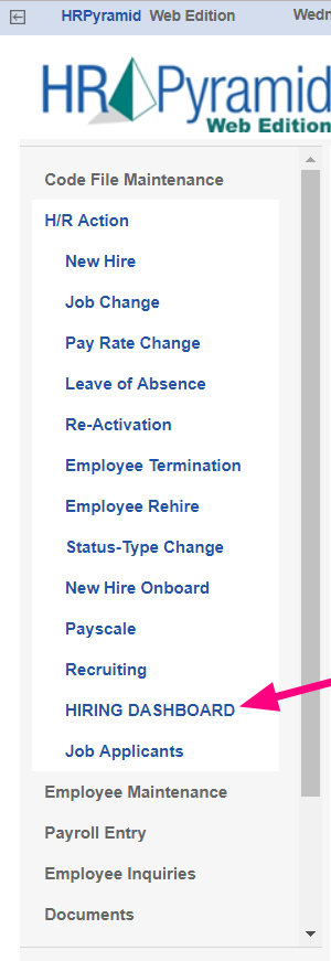 Once you have completed these steps, you should be able to access your new PEO Hiring Dashboard by going to HR Action and clicking on the Hiring Dashboard option.